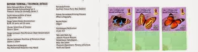 Depicted below is the set of 3 stamps, miniature sheet and booklet which make up the Butterflies Part 3 issue which Brunei released on 12 December 2013:-